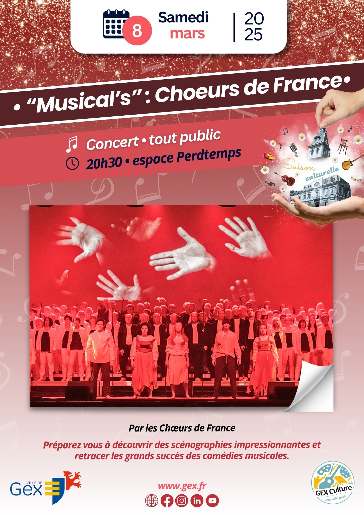L’espace Perdtemps accueillera un nouvel évènement de grande ampleur à ne pas manquer puisque les Chœurs de France s’invitent à Gex avec un magnifique show :