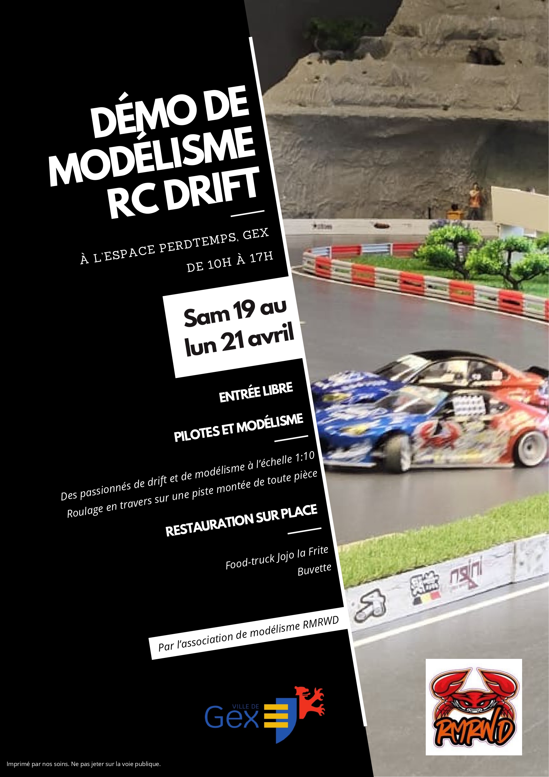 Ce week-end est dédié au modélisme radiocommandé à l’échelle 1:10 et plus particulièrement au drift. Pour l’occasion, une piste sera montée de toute pièce où vous pourrez observer les pilotes se challenger, rouler en tandem ou en petit train.