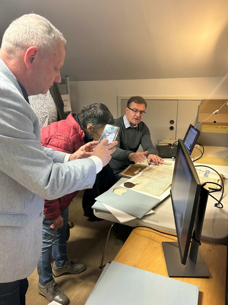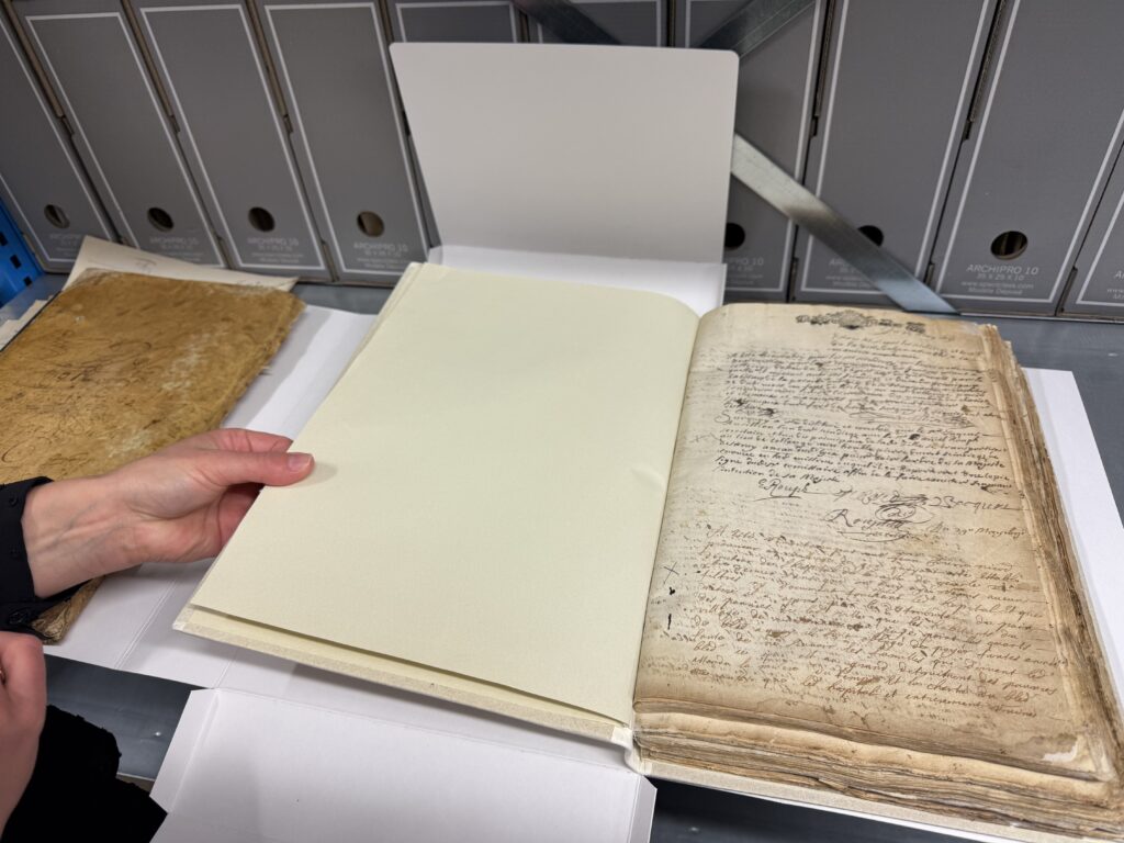 La Ville a fait appel à plusieurs restaurateurs d’art pour restaurer ses documents les plus anciens et les plus abîmés. Actuellement, c’est Mme Cindy LANDRY, restauratrice du patrimoine, qui travaille au service des archives gexoises pour un nouvelle phase de 3 ans : 2025 – 2026 – 2027.