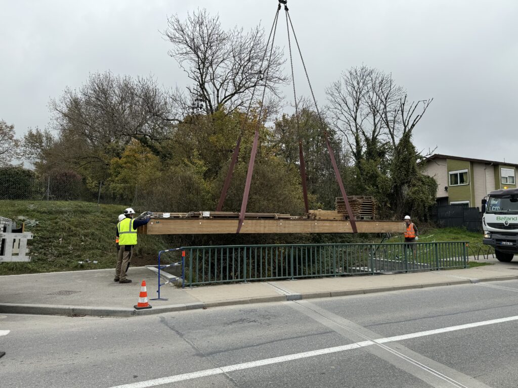 Deux passerelles pour vélos et piétons ont été installées avenue des Alpes de part et d’autre de la route au-dessus de l’Oudar. Les connexions avec la voirie ont été effectuées courant décembre, permettant aux usagers de les emprunter librement depuis les trottoirs.