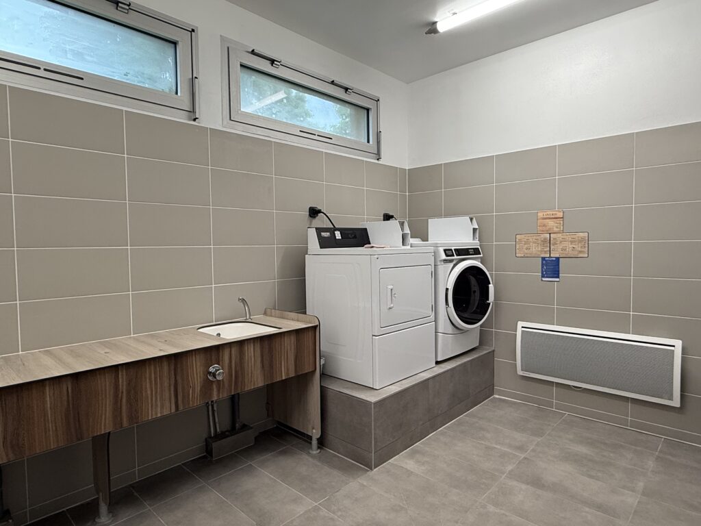 Elle comprend un coin cuisine, un vestiaire ainsi que des toilettes normes PMR.