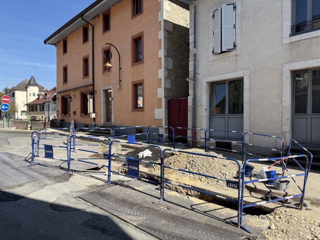 Depuis le 7 avril 2025, l’entreprise SOGEA intervient sur la partie basse du chantier pour débuter le renouvellement des branchements. L’accès à la partie basse de la rue de la Fontaine, rue Jean Perrier, passage de la Voute et haut de la rue du Commerce est donc barré en journée entre 8h30 et 16h30. La rue Charles Harent est quant à elle exceptionnellement ouverte à la circulation dans les deux sens pour permettre la descente.